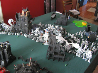 Enjoy these pictures of 40 000 points of models fighting over a single massive table using Fifth Edition rules one last time. We've already got our Sixth Edition rulebooks out and have already started pouring through them. Hopefully you too are enjoying the changes, both the good and the bad, and maybe soon an equally large battle will be played out again. But until then, let us all acclimatize to the new rules! Have fun and keep the grim dark battles raging.